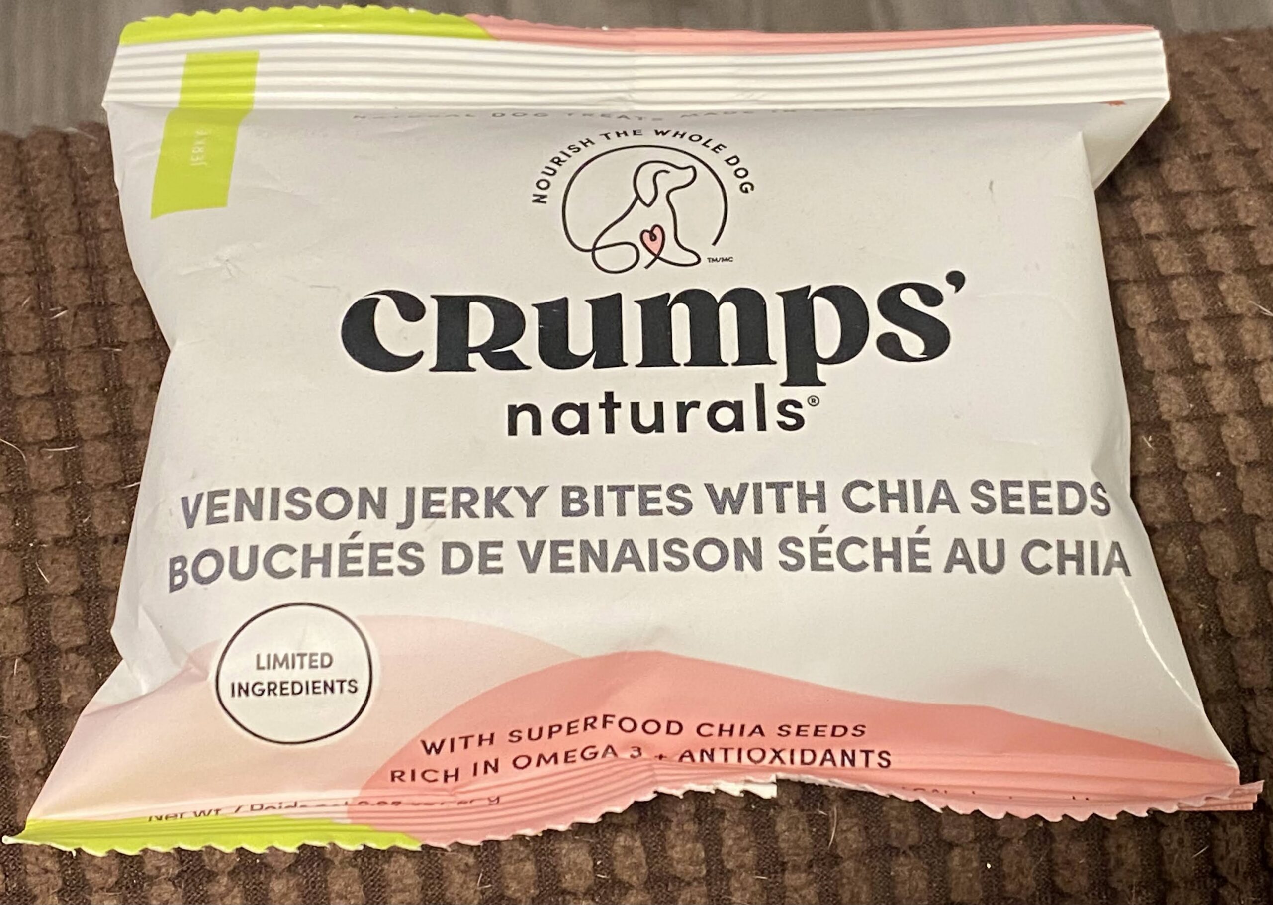We’ll start with the Venison Jerky Bites, as that ended up being what he trialled first. He probably smelled the venison in the bag and said he must have it.
